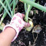 Après avoir déterré, évitez de cogner les oignons les uns contre les autres. S'ils sont abîmés, ils pourriront plus vite. Pendant le séchage, retirez soigneusement la terre des racines.