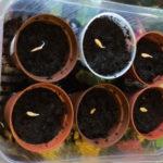 Pour cultiver des semis de concombres, utilisez de longues caisses ou des godets de tourbe. L'avantage de ces derniers est qu'il n'est pas nécessaire de retirer les pousses ; elles sont plantées en même temps que les plants. Placez 2 à 3 graines dans chaque contenant au cas où l'une d'elles ne germerait pas. Un mélange d'humus, de tourbe, de tourbe et de fumier de vache est idéal pour les semis. Le sol ne doit pas être enterré à plus de 3 cm de profondeur.