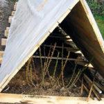 - Les variétés hautes doivent être pliées au sol, recouvertes de branches d'épicéa, puis un abri d'air est créé sur le dessus.