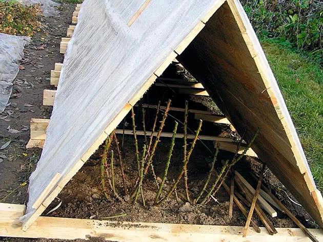 Si les boutures de rosiers ont été plantées à l'automne, il faut les protéger du froid et de la neige. Des arches doivent être installées au-dessus des boutures et enveloppées d'un matériau isolant.