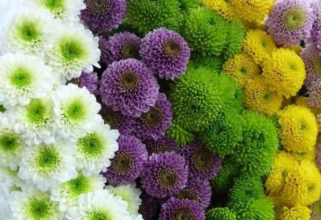Les obtenteurs ont développé plus de 200 variétés de chrysanthèmes, chacune se distinguant par la couleur unique de ses fleurs. Les fleurs sont roses, blanches, jaunes et d'autres couleurs.