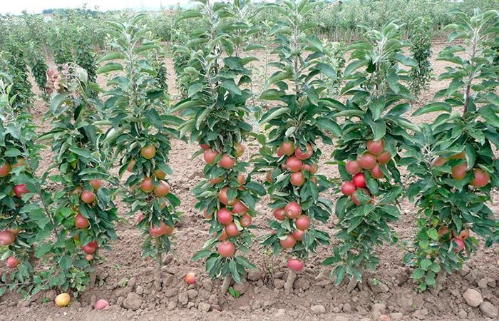 Les arbres colonnaires sont des variétés semi-naines. Leur maturité précoce permet une maturation précoce des pommes. Le tronc colonnaire est généreusement parsemé de branches fructifères formant des anneaux ou des lances.
